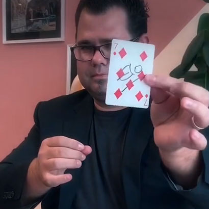 Show your empty hand ... Slowly approach your pocket ... Ask your spectator to count and immediately immerse your hand in the pocket of your jacket. Your hand barely comes up that it comes out immediately holding between thumb and index a single card! Believe us, you have to see it to believe it! The spectator did not even have time to start counting that your hand already came out!