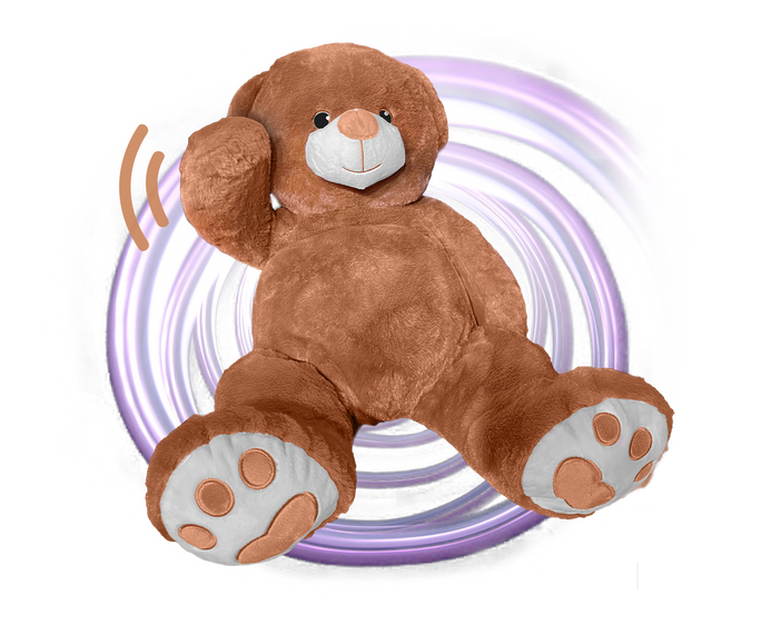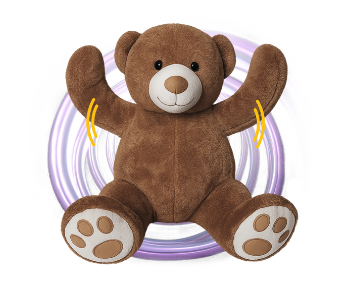 Le nounours lève le bras puis le redescend pour signaler un choix ou révéler un moment magique.