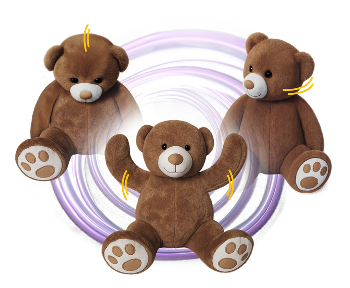 Grâce à une mini télécommande discrète, facilement dissimulée dans la main, vous contrôlez votre nounours à distance.