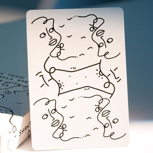Shantell Martin playing cards present a fully personalized design inside and outside, exposing its narration wonderfully designed every centimeter. The cards themselves are carefully framed in blind embossed paper with canvas texture.