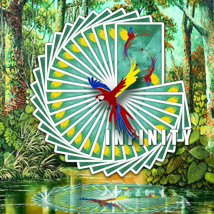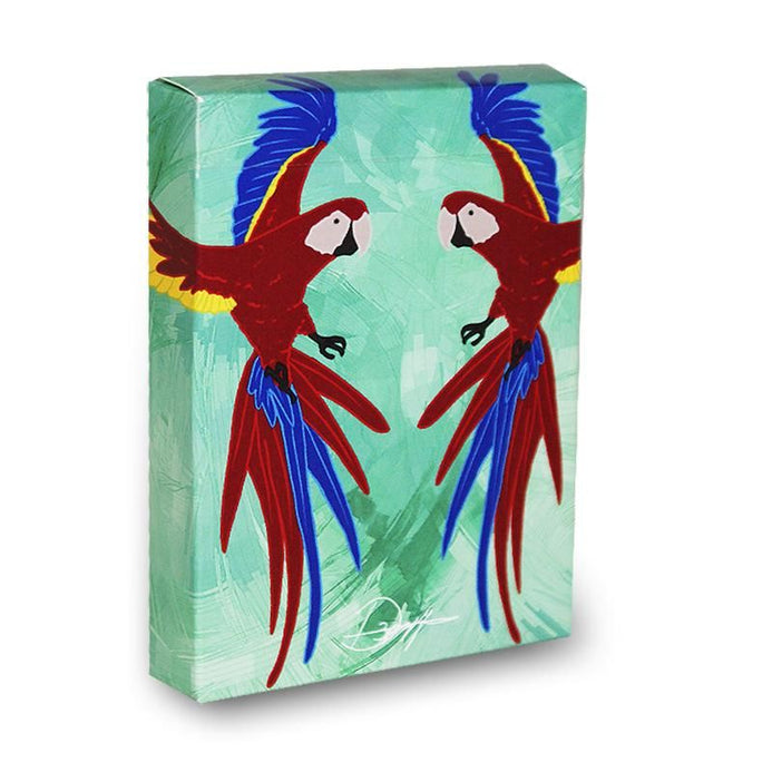 Au dos des cartes, ainsi que sur le joker, deux perroquets surgissent de trous noirs : ces oiseaux symbolisent le ciel, tandis que la branche sur laquelle ils reposent représente la terre.