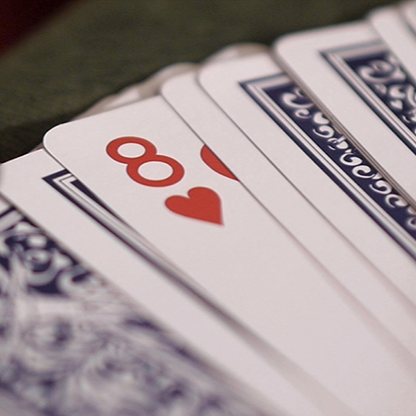 The magician shows a blue backed jumbo deck to a spectator explaining it contains a prediction. Then he says he has another deck, but it's very special; it's an invisible deck. A spectator chooses a color from the invisible deck and then he selects any value and any suit with ABSOLUTE FREEDOM, for example the 5 of Hearts. The magician takes the jumbo blue backed deck and when he spreads the cards, everyone can see there's only one card face up: it's the 5 of Hearts. Then he turns the 5 of Hearts face down, showing it's the only card with a red back. But that's not all; the magician spreads all the deck showing all the faces are blank.