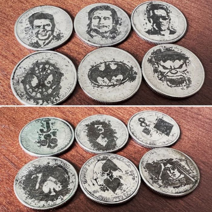 An epic range of beautifully burned illustrations on US Quarters were printed.