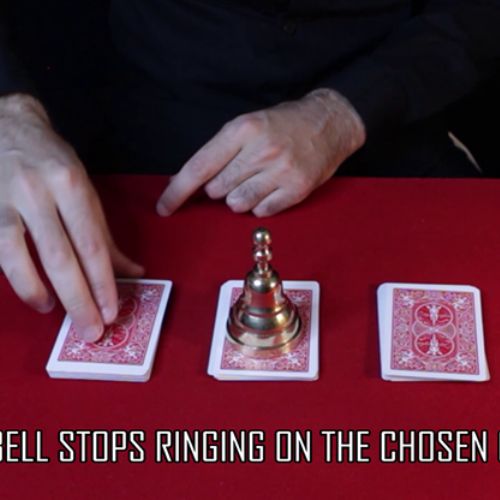 The bell : A card chosen (and signed) by the spectator is lost in the middle of the game. The magician cuts the game into 3 packets and uses a bell to find the chosen card. The bell is shaken on the first package and sounds. She is then shaken above the second package and sounds again. But when the bell is shaken on the last package, it does not ring! The bell is then shaken on the other two packages and sounds again. The spectator then returns the package of the package on which the bell did not sound, and this is the chosen card! Note that the bell can be shaken either by the magician or by the spectator.