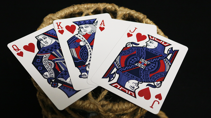 This playing card deck features custom-colored and enlarged court cards and the classic Bicycle Rider Back design. The playing cards are printed on Bicycle thin crushed cardstock for a premium play experience and utilize Bicycle's proprietary classic air cushion Finish for unmatched shuffling and dealing performance.