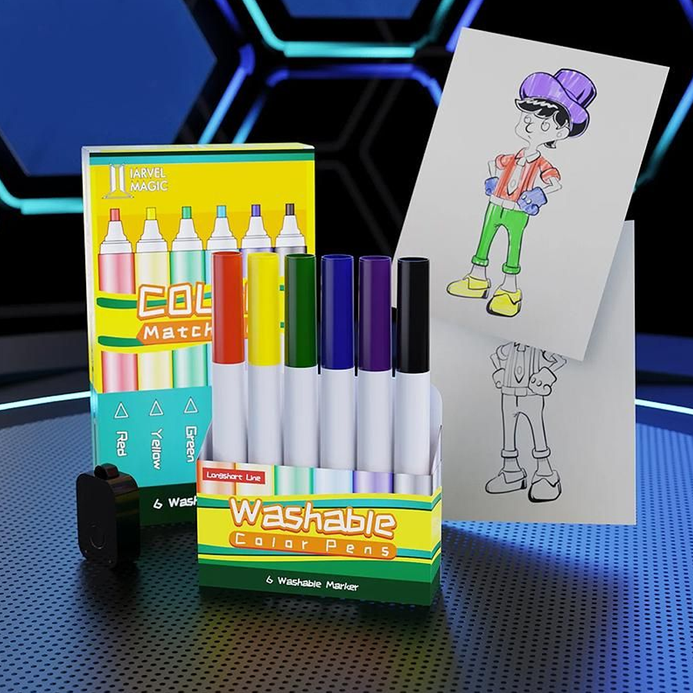 6 x color pens. 5 x black and white drawing sheets. 2 x packaging boxes. 1 x remote control. 1 x loading cable. 1 x rigged support. 1 x Instructions card.
