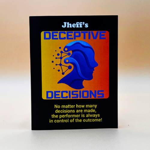 DECEPTIVE DECISIONS is a new revised version of one of the favorite and most requested closed-up routines of Jheff. Previously, it was printed both in JHEFFSMIND and in PARIMENTAL. This version has an entirely new presentation and some additional shades and subtleties.