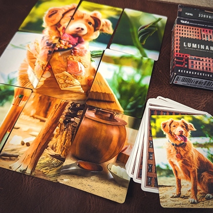 The performance of the trick requires no specific language so it can be performed in whatever language you choose (although the marks are in English... if you choose to use them). The deck comes in a low-key tuck box advertising the photography exhibition, LUMINANCE, a collection by a famous (fictional) photographer. There is even a QR reveal on the bottom of the tuck box.