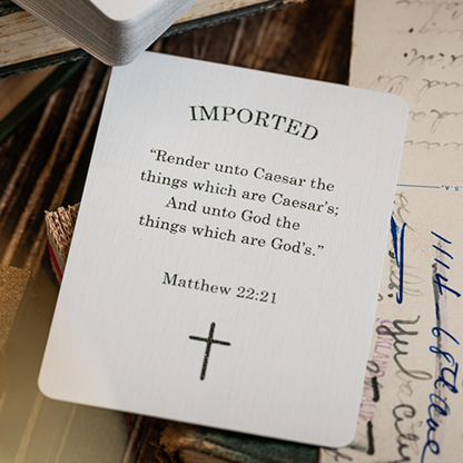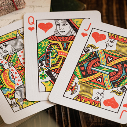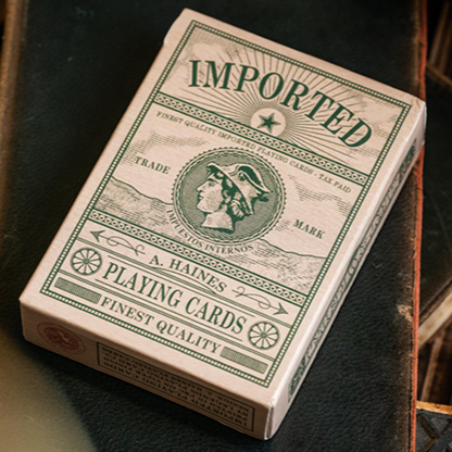 Inspired by classic decks from the golden age of playing cards: Imported Playing Cards is a fully custom deck of poker-size playing cards drawn by hand in a warm, vintage style and features standard re-drawn courts, pips and Aces in a velvety soft tuckbox drawn in the style of an antique tax wrapper.
