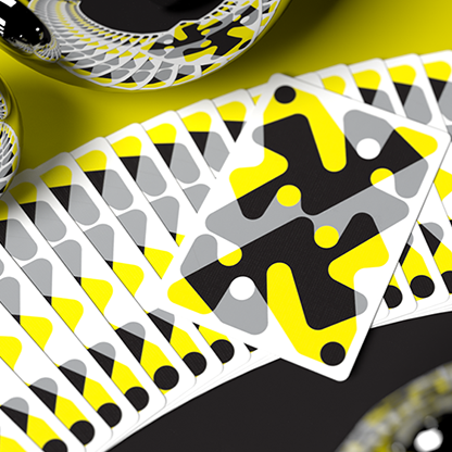 The considered patterns formed from the unique grid are brought to life with high contrasting colors - the neon yellow ink bold on the eye and fluorescent under UV light. Designed for flourishes, spreads and packet cards; the overlapping colors playfully combining and contrasting in motion. Even when not in use, the deck is a work of graphic art and sure to be a truly unique addition to any collection, and continues the fascinating journey of experimentation and evolution as the series grows. Edition 2 takes the series one step further with more usable, playable card faces, and completely custom illustrated court cards, all based off the same principles of the circular matrix.