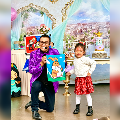 • Start the routine by showing a handkerchief with an image of a bunny.