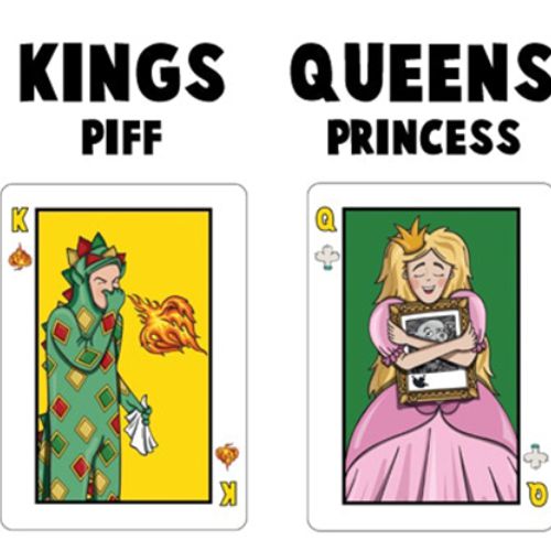The kings are represented by Piff, of course. The queens have been transformed into princesses, because the princesses are sexier and the queens are generally married, which does not fail to create problems. Finally, the valets are represented by Mr. Piffles himself, the only Chihuahua magician in the world.