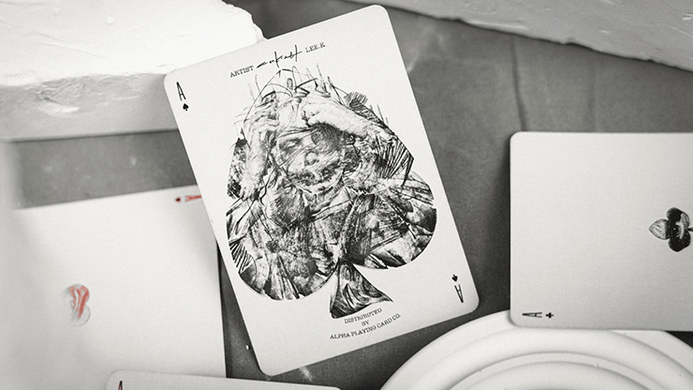 The black, white, and gray colors bring a quiet and silent atmosphere to the scene. Multiple non-repetitive character eye illustrations focus on the card backs, making each card in the deck a unique presence. Upon closer observation, not only are the card backs adorned with eyes, but various eye illustrations are also hidden in the suits on the card faces. The refined and minimized pip design further directs attention to the uniquely designed suits.