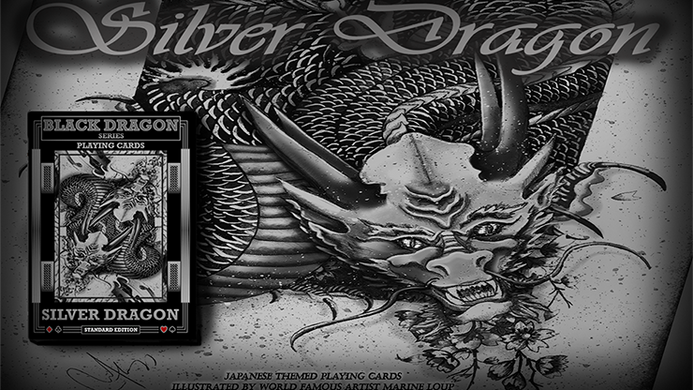 Silver Dragon (Standard Edition) Playing Cards is the 3rd deck in the series from the Black Dragon Series of Playing Cards. Decks contain 54 premium quality playing cards featuring Japanese-themed illustrations by world famous artist, Marine Loup.