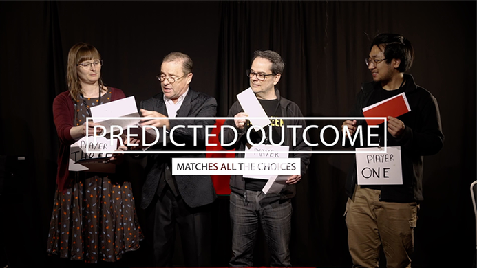 The performer shows a book called, "Influence & Intuition" and has a spectator think of a word. Four envelopes are shown, and each person gets a FREE choice of any envelope. The final envelope is left for the performer. Each person opens their envelope to find a color piece of paper inside, and inside the performer's envelope is a piece of paper which predicts EXACTLY which spectator will choose which color!