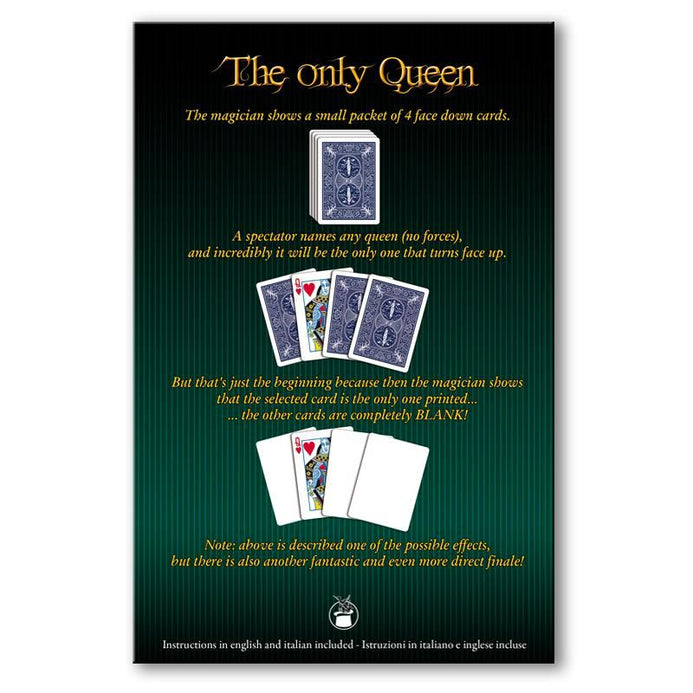 A spectator thinks freely to one of the four queens. The magician then shows that he incredibly predicted the queen that the spectator thought!