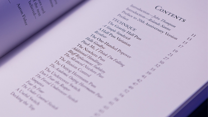 The "Techniques" section is a treasure trove of versatile sleights, from the fluid One-Handed Popover to the deceptive Illusion Control and the seamless Nowhere Pass. Yet, it's the Gravity Half Pass that stands as the greatest nod to Aaron's genius. As Johnny Thompson stated in his introduction, "there is no substitute for the magical impact of a well-executed pass." Aaron's mastery lies not only in the design of the Gravity Half Pass but in his ability to make it accessible to every magician.
