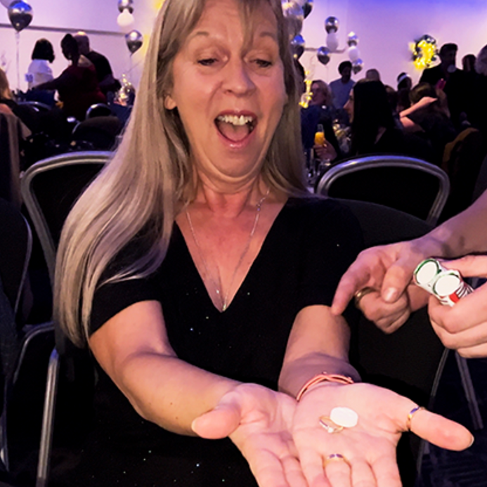 Predictions: Open a sealed package to reveal the card chosen by the spectator or the idea that a person has, etc. written or engraved in a random mint.