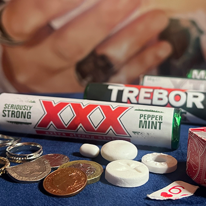 You must actually open the middle of the package - it is an incredibly strong spectacle and sound - the tear - the dry noise - the bursting - revealing their impossible object stuck between the other mint candies when you place it in the hands of your spectator. You can even choose to steal broken mint fragments when you open the package. And of course, spectators can even take a real mint.