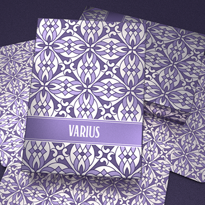 The pattern of the Purple Limited deck carries memories of the medieval royal court. Nodes that join together elegant lines of swirls coupled with the purple & silver foils, lend a touch of grandeur highness. However, while inspected close up, the pattern seems like a repetition of the symmetrical flowery coat of arms, one will realize the lines are misaligned when observed from far, which creates a sense of oddity. The effect is a borderless back design with some hints of optical illusion viewed from near to far.