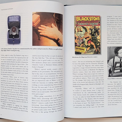 In this 107-page book, Rauscher takes the reader inside the Gibson house in Eddyville, N.Y. where he, Walter and Litzka Raymond Gibson spent so many hours. For the first time, photos of Gibson's extensive library and home can be seen. From the memorabilia-covered walls of posters, broadsides, and paintings, to the many libraries (each with its own typewriter) the reader gets to see where Walter drew his inspiration for The Shadow, Norgil the Magician and other characters.