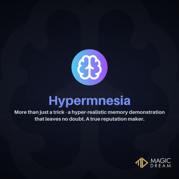 Nous recommandons vivement Hypermnesia à tous les magiciens. Facile à utiliser, et l’effet mémoire est tout simplement bluffant.