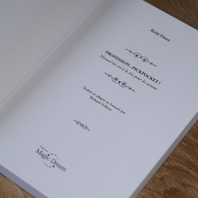 With the book "Profession: PickPocket - Manual of the flight to the shooting for artists " You have a summary of its 50 years of experience in hand. In this book, Ricki Dunn reveals how to steal each type of element. You will also learn professional routines, how to develop a pickpocket act and how to sell your number.
