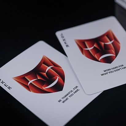 Growing up, we were taught to abandon our dreams because they are not realistic. We became "dead at work" which no longer pursue dreams or desires. In the traditional design of playing cards, red is generally applied to hearts and diamonds; However, in blood amber, we turned things in another direction to deliver an essential message to everyone. Thinking and acting beyond the Convention if that is what it takes to progress. We must change the conventional mentality, for fear of remaining forever in uncertainty and inaction.
