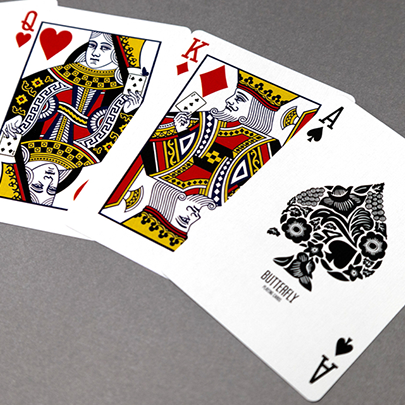The Gaff Deck works perfectly with red and Blue Butterfly Workers' card games.