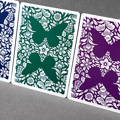 The Butterfly Workers Gaff Deck has 56 cards. The most used appear several times, such as virgin face cards or double back cards. Others, for example our cocoon and caterpillars, only appear once.