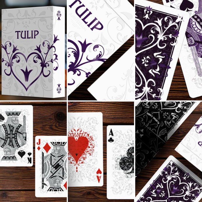 Inside, point -point figures and cards arouse familiarity and include personalized indexes as well as a font inspired by the old Dutch writing style. In this edition, they also added a "digital pointer" under the indexes to make each card even more unique. Each ace of the Tulip Playing Cards series is a jewel of the crown, ready to fly the show by playing, mixing or revealing!