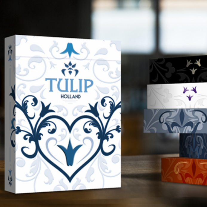 The White Tulip game is the 3rd opus in the Tulip Delft Blue series. The custom designed deck presents the famous Delft blue colors with Tulip as a centerpiece.