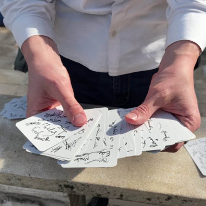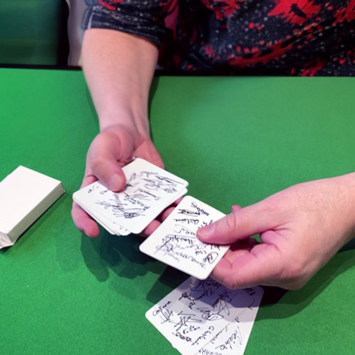 Each spectator and magician affixed his signature on a carte blanche, thus accumulating more than 1,200 autographs spread over the 104 faces of a game of 52 cards. You can even add your own signature to one of the cards, joining this long united channel by the passion for magic!