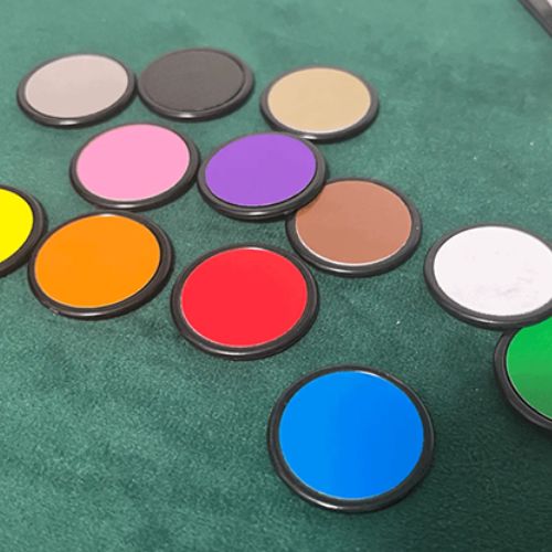 The magician places twelve colors of tokens on the drawing board, and the front and back of each token color are exactly the same. The public randomly chooses a token and turns it over. The magician empties all the tokens in a bag and can guess the color of the tokens chosen by the public then Write it on the drawing board!