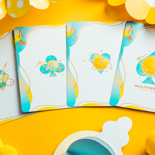 The whole game is not what you think when you imagine at first glance a playing cards to play. The colors are bright and clear, unlike classic games. THE bright blue and yellow Really attract your attention by showing you the playful character of the game ... inviting you to embark on the trip of the multiverse!