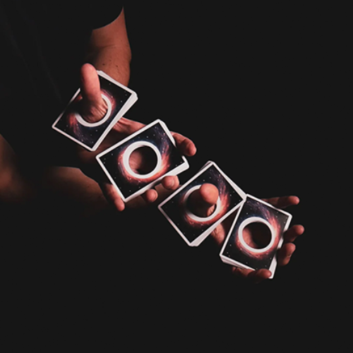 The cards have been printed at Cartamundi and have been in pre-production for more than a year. It took us a long time to get there. The hole has the exact dimensions of the interior of our orbit o signature on the back of the card. All faces of the cards are distorted around the black hole.