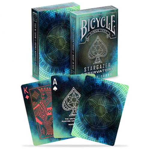 The Bicycle Stargazer Observatory Playing Cards are the latest addition to the Stargazer Bicycle collection on the space theme. The design of the Bicycle Stargazer Observatory Bicycle Cards was inspired by constellations and sacred geometry. The box and the back of the card present the shades and colors of the depths of the galaxy. Like the rest of the Stargazer collection, this game includes superior quality aluminum packaging on withdrawal, highlighting magnificent silver aluminum accents. The faces of the cards have complex personalized seeds and contrasting combinations to facilitate the playability of your favorite card games. The Stargazer series was a favorite playing card among cardists because of its fascinating conceptions which improve all development, spring or maneuver. The series is a favorite among collectors for beautiful art and the mysterious astronomical theme. The Bicycle Stargazer Observatory Bicycle Playing Cards are printed on high-end Bicycle® brand cardboard paper with Air-Cushion® finish, these cards mix and handle perfectly with the quality and performance you expect from the Bicycle brand.