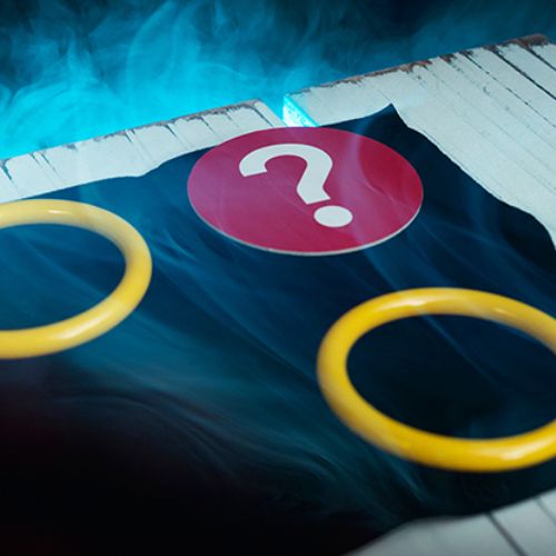 You place a coin on the black carpet (included) and stack the two rings around the room and cover everything with the disc, creating a "haunted house"!