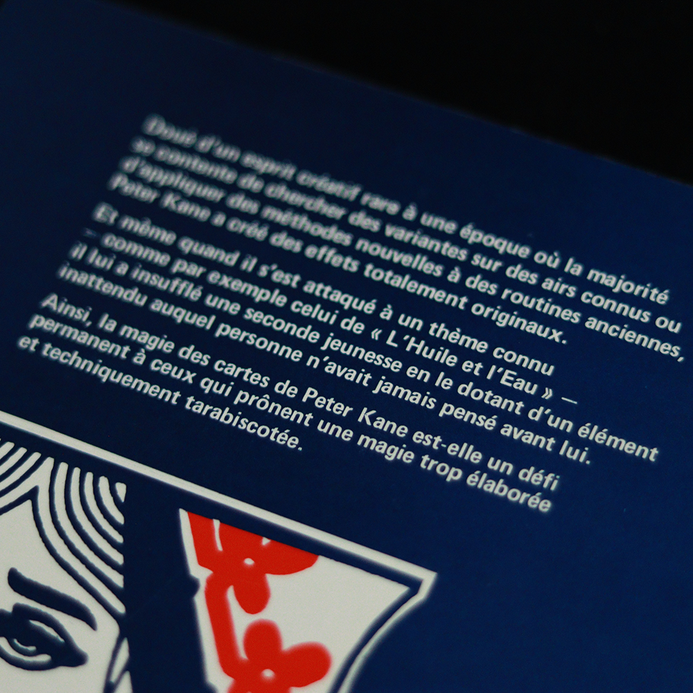Thus, the magic of Peter Kane's cards is a permanent challenge to those who advocate an overly elaborate and technically tarabiscotated magic.