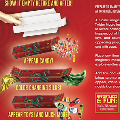 Place any item inside and make it vanish or insert a white silk, and magically make it emerge in vibrant colors. The Dragon Tube lets you explore endless possibilities, with the only limit being your imagination.