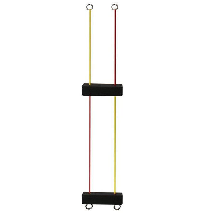 Pull the two strings one after the other to show that they actually pass through the blocks.