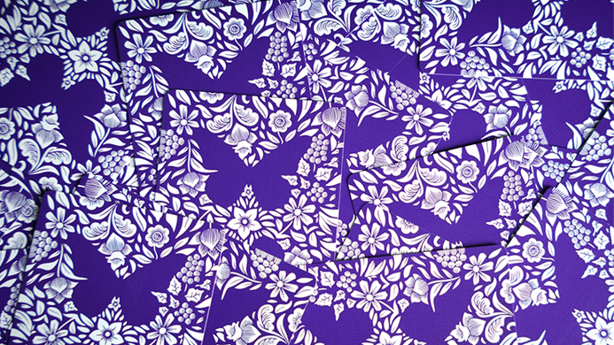 The game is housed in a luxurious storage case Made from durable matte purple paper with the pattern stamped in white leaf.