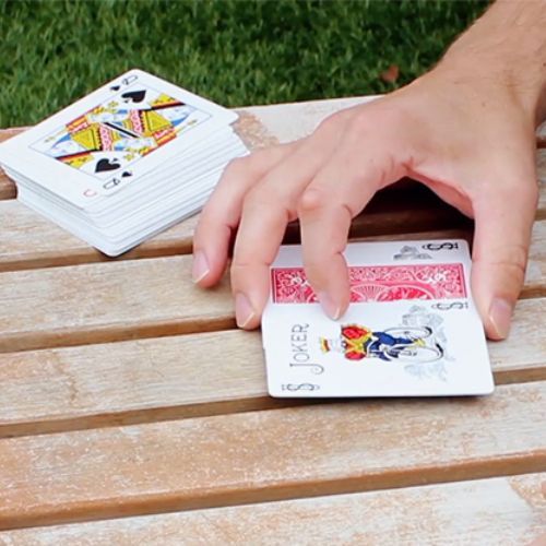 Then the cards are mixed and A random card is sandwiched between the 2 jokers so that the card remains in sight at any time.