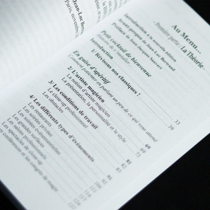 A living, funny book, full of advice, tips and anecdotes that have become a reference work in a very short time. If it is the essential guide to all those who wish to become a professional magician artist, he succeeds in the Tour forces the general public by granting him the privilege of discovering the magic of proximity and his real secrets. This book is one of the most sold French -speaking magic books. It has become a classic of close-up magic in professional situations and is now translated into several languages.