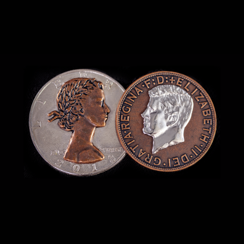 The Magician Holds the Silver Dollar at Fingers and Gives a Quick Wave of His Hand. The Silver Head of Jfk Now Changes Into the Copper Head of Queen Elizabeth II. The Rest of the Coin is Still Silver .... Only the Head has changed.