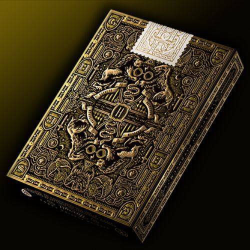The outdoor packaging is simply magical. An opulent and decorated gold leaf. Striking accents in the colors of the house. A precise and ultra-detailed embossing. A luxurious playing card case to the touch and the eye, from all angles.