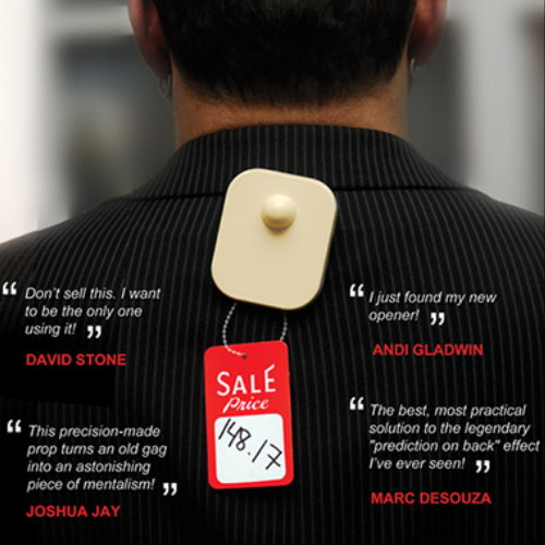 The magician then removes his jacket. The spectators see the anti -theft that still remained attached with the price label in the back of the jacket ... The prize written on the label is 79.99 euros!