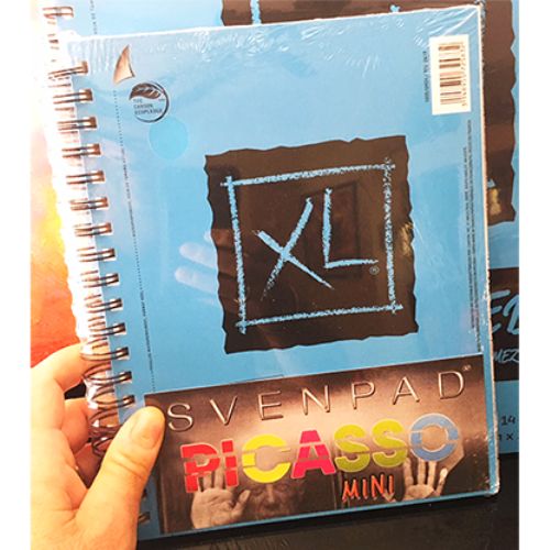 This is the first time that we have taken a ready-to-use artist's notebook and manufacture it according to our high SvenPad® standards! The spine here is glued to the spiral, the same as our traditional Kod Svenpads®. In other words, the pages do not move and the long short pages keep their strict tolerances. We separate a high quality notepad for artists, then the SvenPad® treatment. The result will exceed your expectations. "The Svenpad® Picasso is simply magnificent and its three sections have been personalized in an endlessly creative way. In addition, it looks completely innocent and can easily be seen on stage.