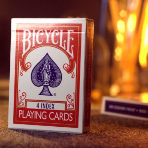 Original et pratique, le jeu 4 index est imprimé en Bicycle (Rider Back) avec la finition Thin Crush qui permet d’être plus durable dans le temps.