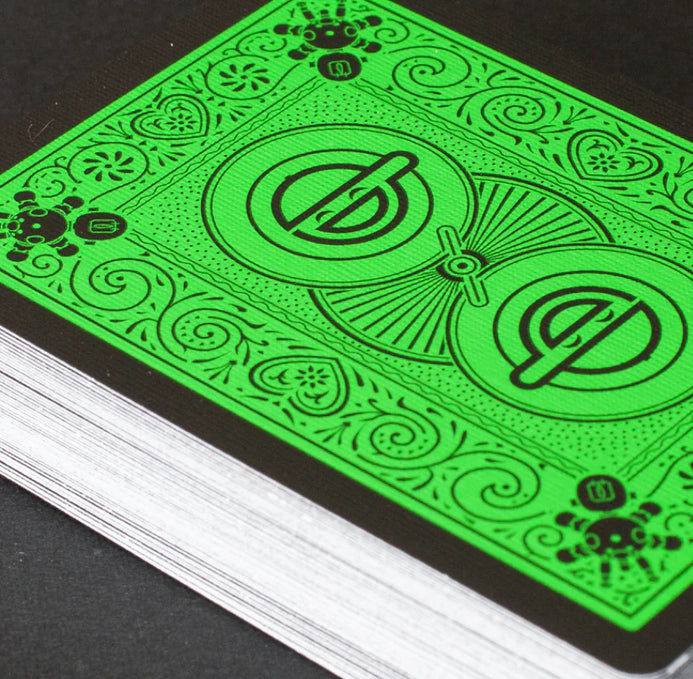 Ces sublimes jeux exclusifs venus du Japon présentent un motif de camouflage optique sur la face et la marque de l'Homme qui rit au dos, ce qui en fait des cartes à jouer typiques du cultissime "GHOST IN THE SHELL".